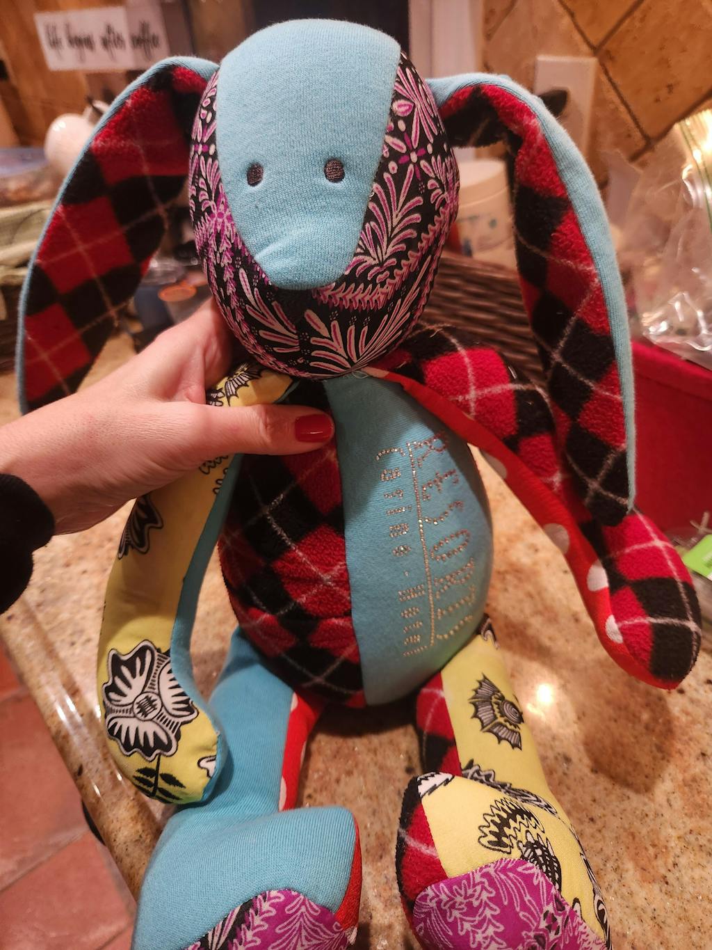 With the passing of my mom, I found it hard to let go of some of her well-worn shirts. Patchwork Bear (or in my case, a Bunny) was the perfect gift to myself.