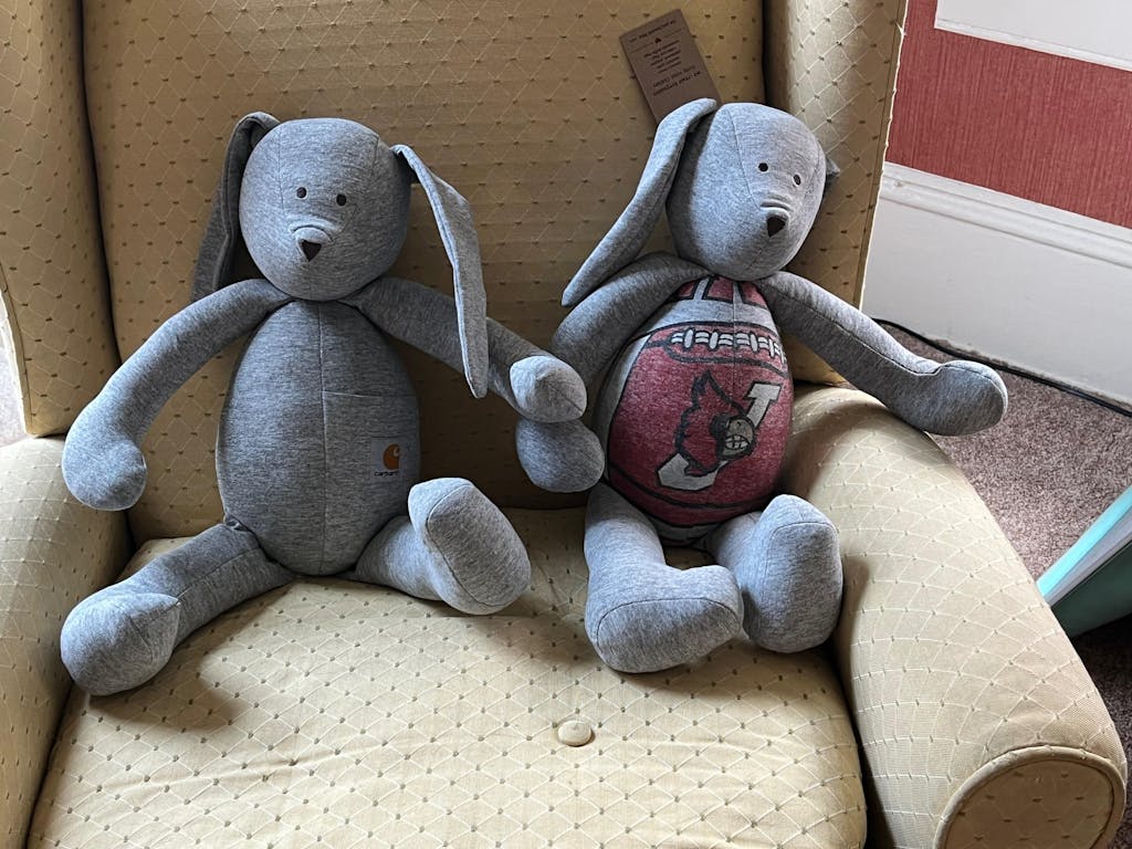 They are so adorable, and well made! Sweet embroidered faces, sturdy stitching and nice seams. They have the logos/pockets from the shirts which is so cute. We really appreciated being contacted to order a second bunny with the extra fabric from our loved one so it wouldn’t be wasted! This is such a special way to save their clothing.