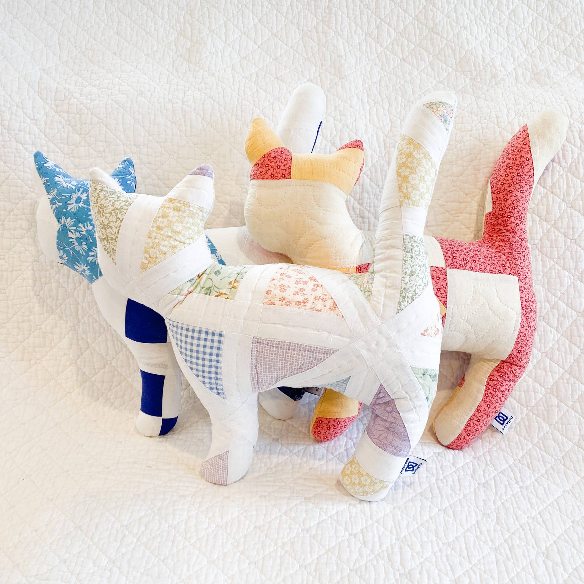 New products featuring the Dresden Plate Quilt Block featured including: pillows, bears, pillows and bags using vintage Dresden Quilts.