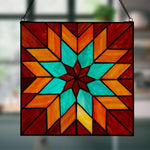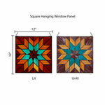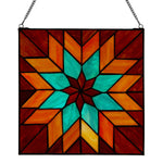12"H Red & Teal Quilt Square Stained Glass Window Panel
