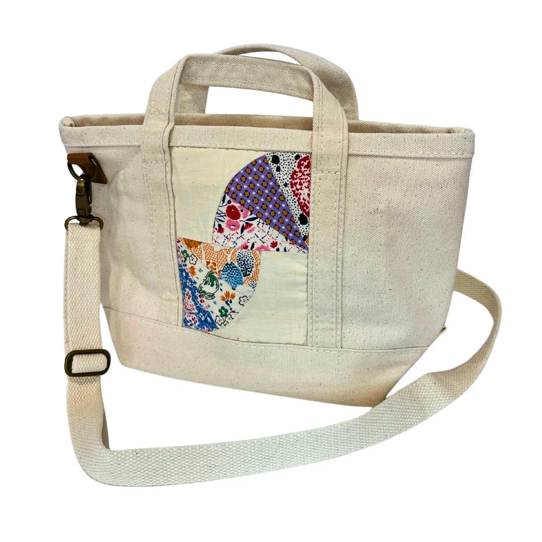 Crossbody Tote Bag with Vintage Grandmother's Fan Quilt Block